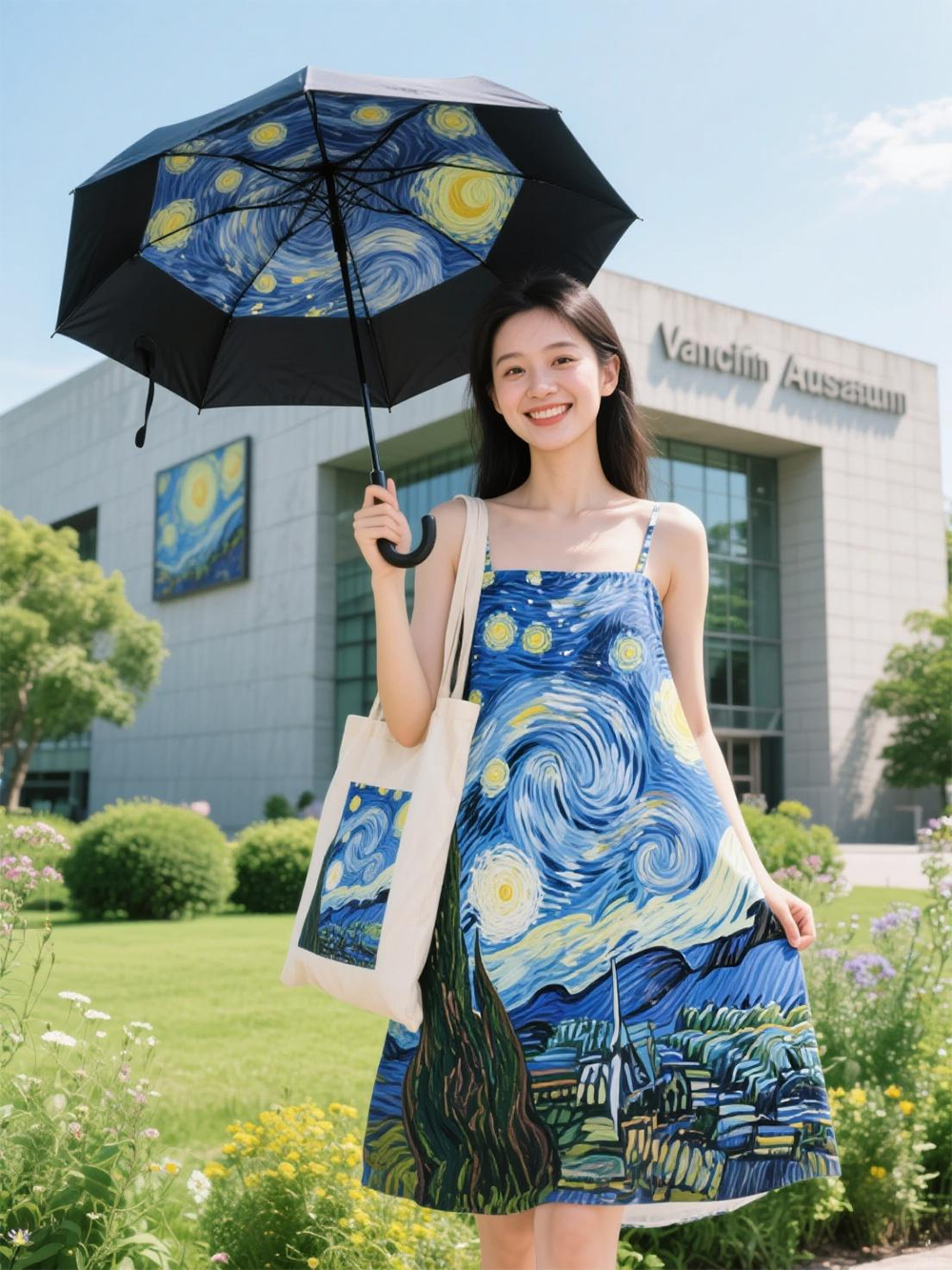 Dutch Van Gogh masterpiece oil painting starry night digital printing auto umbrella
